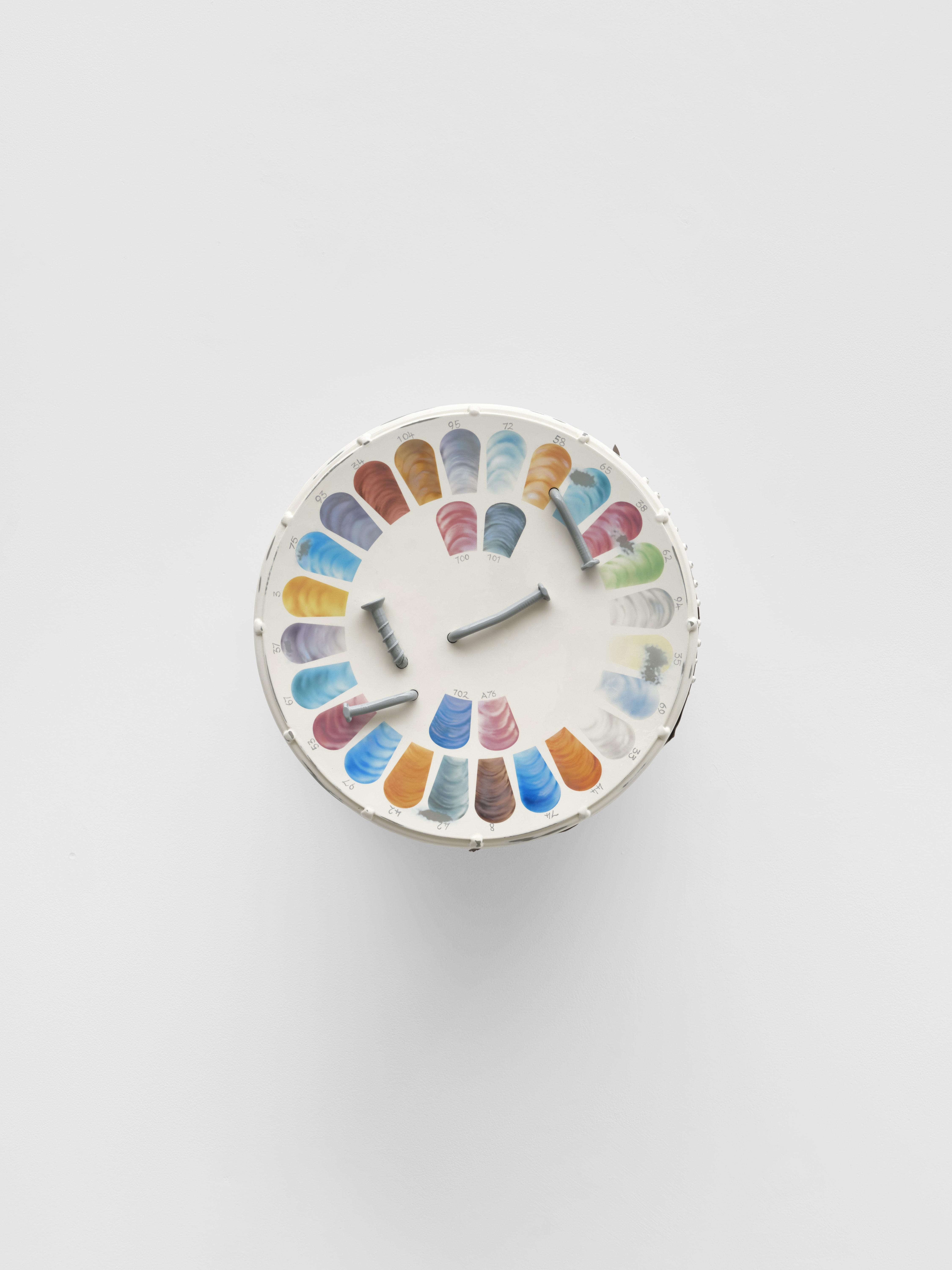 This extends to the larger presentation of Colenbrander’s ceramics. In the center of the gallery, mimicking the ”Clementine,” series, dishes and vases are bolted to the wall perpendicularly with nifty brackets, which seem less like a risky choice or a kind of “reversed archeological process” than something architecturally planned, tested and rendered with special software. I liked seeing these works hanging differently, but the “wrongness” of doing so ultimately felt contrived; a way of forcing a more hidden or profound meaning between the two bodies of work, when such meaning is quite often on the surface. It’s hard to take seriously what some have called the inscrutability of Reus’ work. There may be an effort to withhold straightforward information, but we’re given many chances (sometimes eleven) to land on an interpretation.